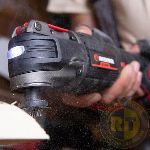 Яскраве LED-підсвічування на передній частині корпуса освітлює робочий простір при недостатньому освітленні. Корпус реноватора симетричний, тому він зручний як для правшів, так і для шульг. Повністю прогумована рукоятка ідеально лежить в руках, знижує вібрацію, не викликає дискомфорт під час тривалих робіт.