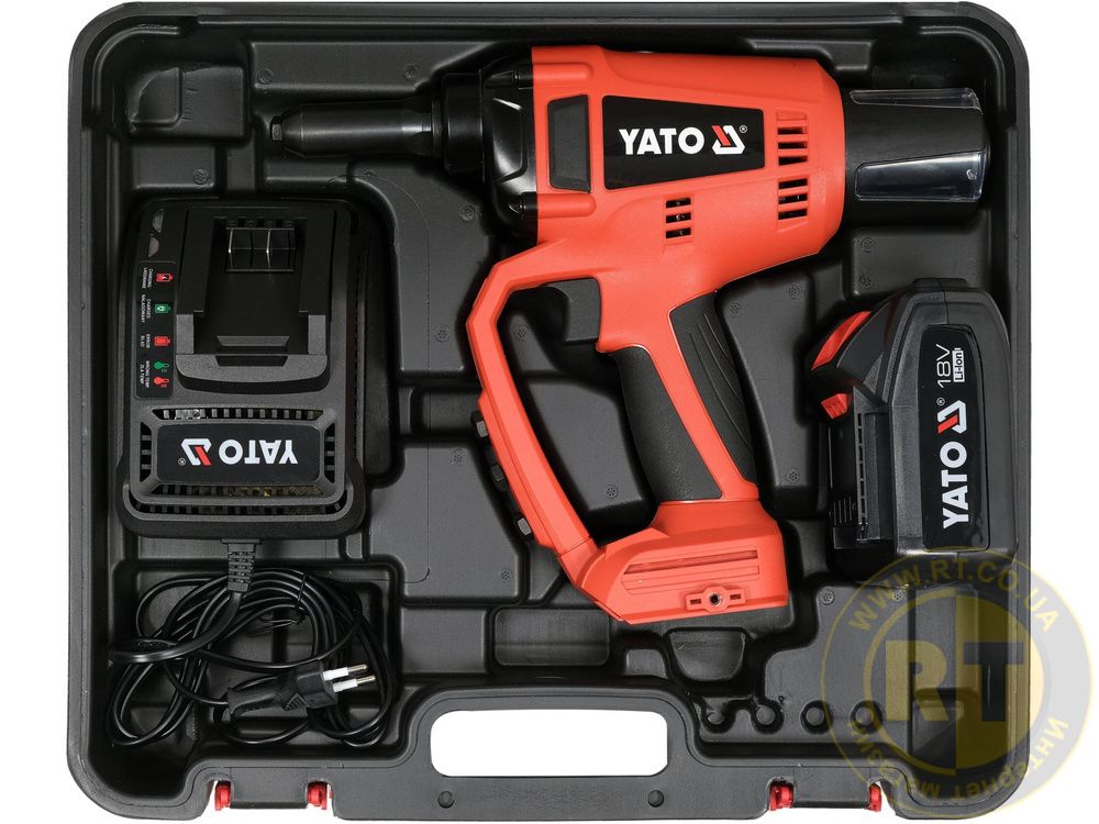 Заклепочник живиться від акумуляторів Yato 18V (продаються окремо), які забезпечують загальну платформу для широкого спектру обладнання, такого як ударні гайковерти, SDS+ перфоратори, кутові шліфувальні машини і т.д.