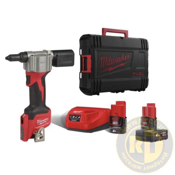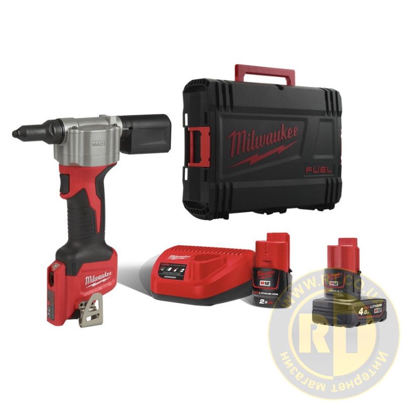 Заклепочник акумуляторний MILWAUKEE M12 BPRT-422X, Øзакл.2,4-4,8мм (ЗУ+1ак.Х2Ач+1ак.Х4Ач+HDкейс)