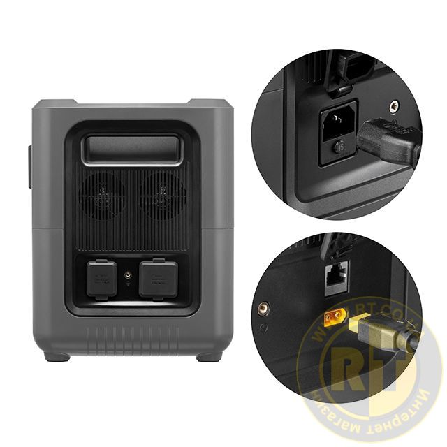 Завдяки високій ефективності з кількома точками живлення ця станція може заряджатися від сонячних батарей, потужністю до 1200 Вт, мережі 220 В, а також заряджатися від автомобіля через порт XT60 (підтримує заряджання до 12 В/10 А) з використанням автомобільного зарядного пристрою і кабелю XT60.