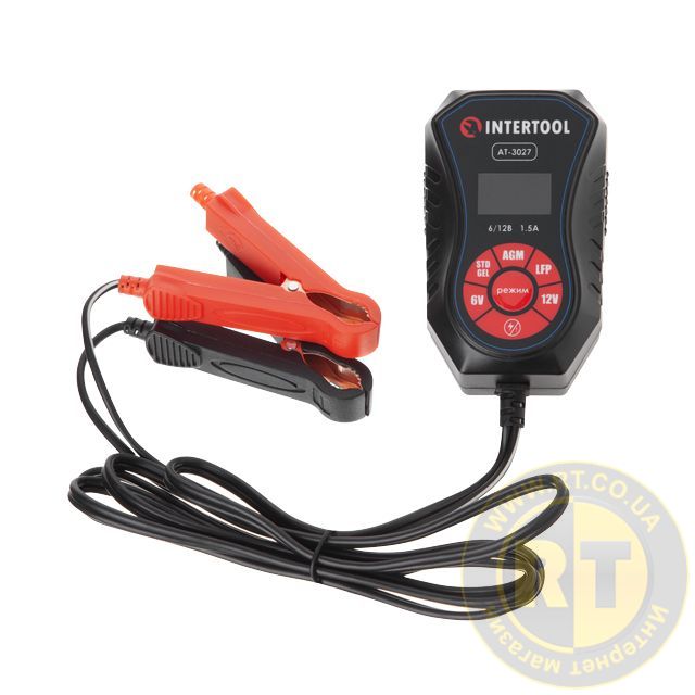 Зарядний пристрій INTERTOOL AT-3027 керується мікропроцесором і системою із багатоступінчастим циклом заряджання. Пристрій підходить для всіх типів батарей: 6 В мотоциклів, 12 В автомобілів, а також для акумуляторів катерів, газонокосарок, гідроциклів, сільськогосподарської техніки, промислового і побутового обладнання.