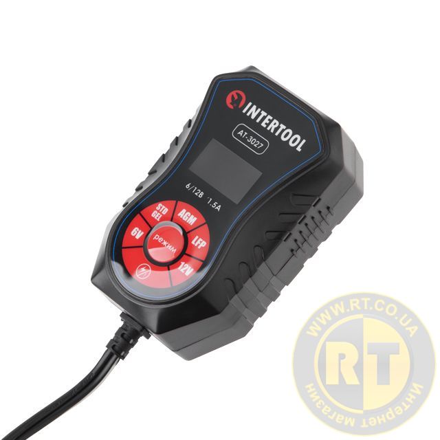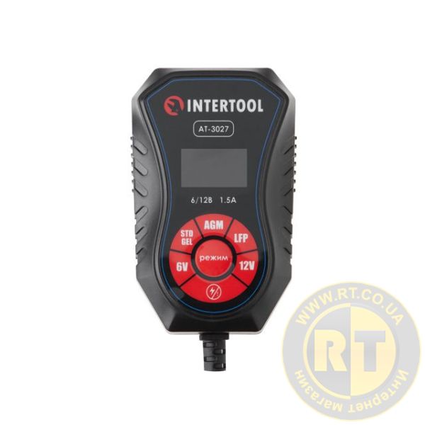 Зарядний пристрій 6/12 В, 1,5 А, 1,2-40 Аг, зимовий режим зарядки, дисплей, з мікропроцесором INTERTOOL AT-3027