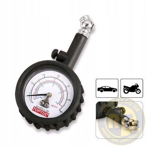 Манометр шинний JEAP060A допоможе Вам точно вимірювати тиск у шинах легкових автомобілів та мотоциклів. Швидко та зручно під'єднується, оснащений шарніром, завдяки якому можна розгорнути екран манометра в потрібному напрямку на 45°. Три вимірювальні шкали різного кольору.