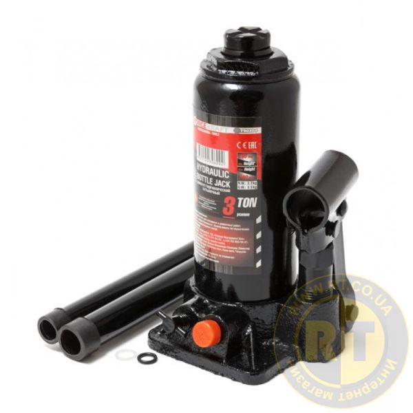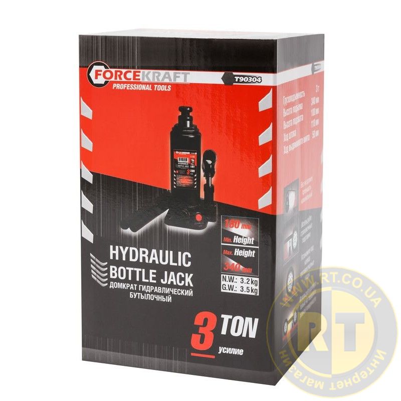 Домкрат пляшковий 3т (180-340мм) з клапаном + ремкомплект FORCEKRAFT FK-T90304 (DS)