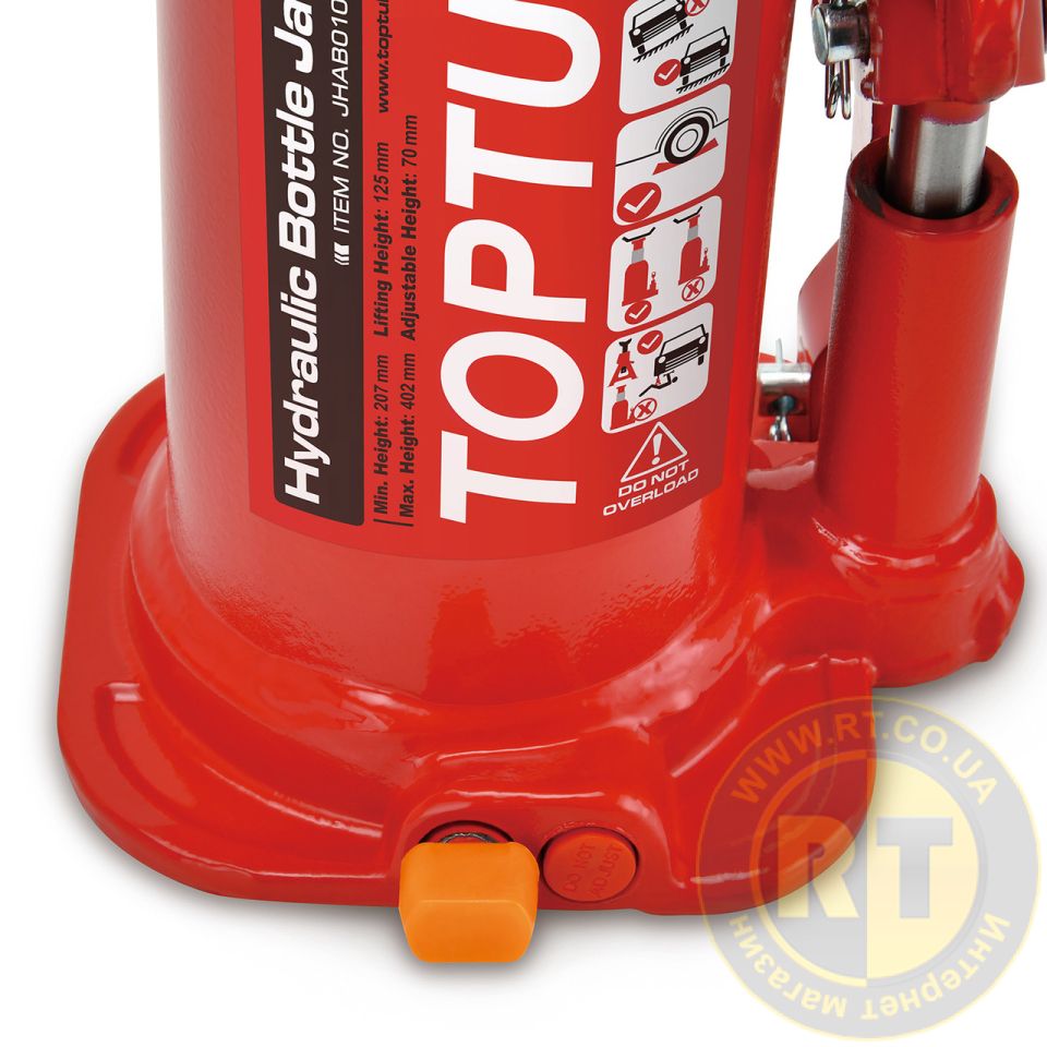 TOPTUL JHAB0102 – це надійний гідравлічний пляшковий домкрат, призначений для безпечного підйому автомобілів при ремонті та технічному обслуговуванні. Відрізняється високою міцністю, зручністю використання та підвищеним рівнем безпеки.
