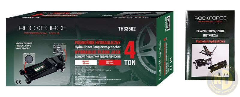 Домкрат підкатний гідравлічний двопоршневий 4 т (h min 95мм, h max 560мм) FORSAGE RF-TH33502(RF83502)
