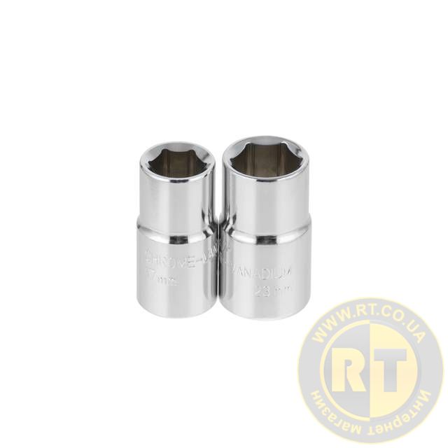 В комплекті дві шестигранні подвійні головки 17х19 та 21х23 мм, вони надійно кріпляться до посадкового квадрата ключа завдяки фіксатору.