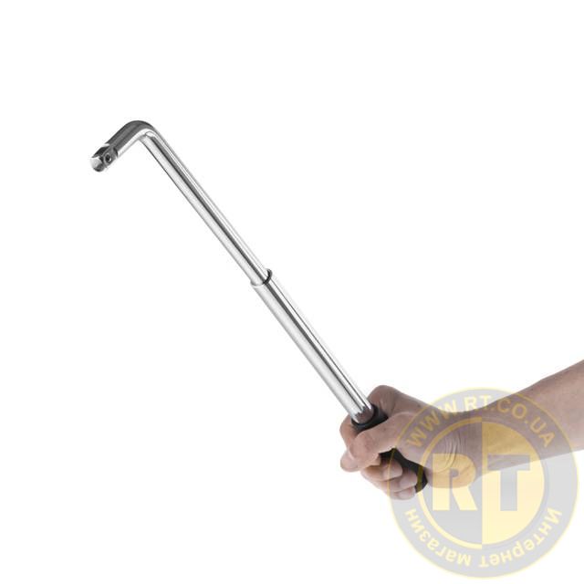 Ключ балонний телескопічний INTERTOOL HT-1605 має L-подібнуну форму з посадковим квадратом під головки 1/2". Застосовується для монтажу та демонтажу гайок і болтів на колесах автомобілів. Це корисний помічник у гаражі для власників транспортних засобів, а також незамінний інструмент на СТО та в шиномонтажі.