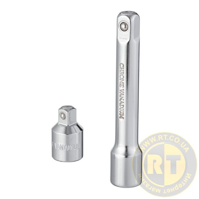 Ключ з посадковим квадратом 1/2" завдяки наявності в комплекті перехідника з 1/2" на 3/8" може працювати із головками з посадковим квадратом 3/8". Подовжувач 125 мм дозволить дістати до важкодоступних кріплень.