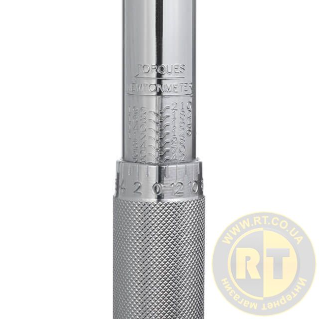 Зручне регулювання крутного моменту з подвійною шкалою (Фут/фунт та Н/м) легко зчитується. Стопорна гайка на торці ключа фіксує налаштування значення крутного моменту, поки ви працюєте.