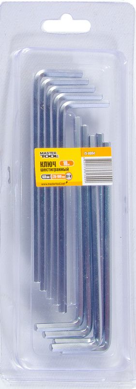 Ключ шестигранний Long Arm CrV 4,0мм 25×109мм набір 10 шт MASTERTOOL 75-0004
