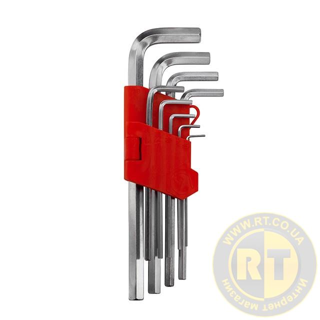 Набір ключів Г-подібних шестигранних подовжених 9 шт., 1,5-10 мм, Cr-V INTERTOOL HT-0602