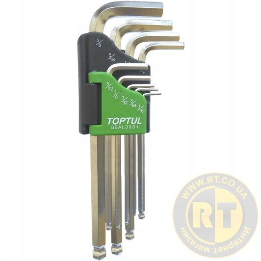 Набір 9 од. дюймових Г-обр. шестигранників з кулею 1/16"-3/8" TOPTUL GBAL0901