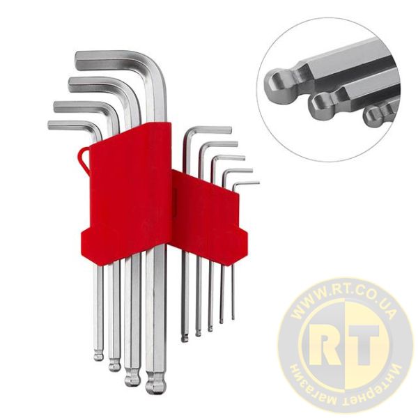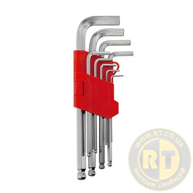 Набір ключів Г-подібних шестигранних подовжених, з кулястим наконечником, 9 шт., 1,5-10 мм, Cr-V INTERTOOL HT-0603