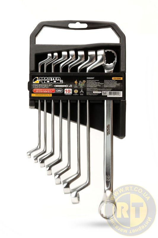 Ключі накидні набір 8 шт (6-20, 22 мм) 31CrV3 COLD FORGED DIN897 MASTERTOOL 72-3208