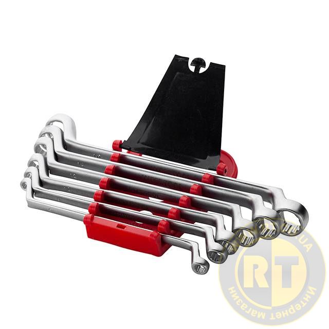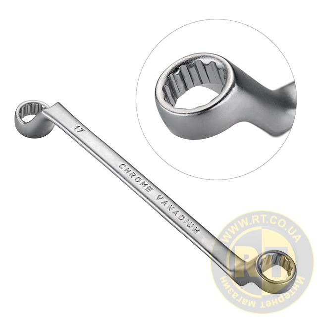 Накидний тип ключів з дванадцятьма гранями збільшує площу прилягання поверхонь та знижує ризик зриву граней гайок та болтів. Практична форма та вигин руків’я ключа забезпечують оптимальні умови для докладання зусилля, завдяки чому ви легко закрутите чи відкрутите кріпильний елемент.