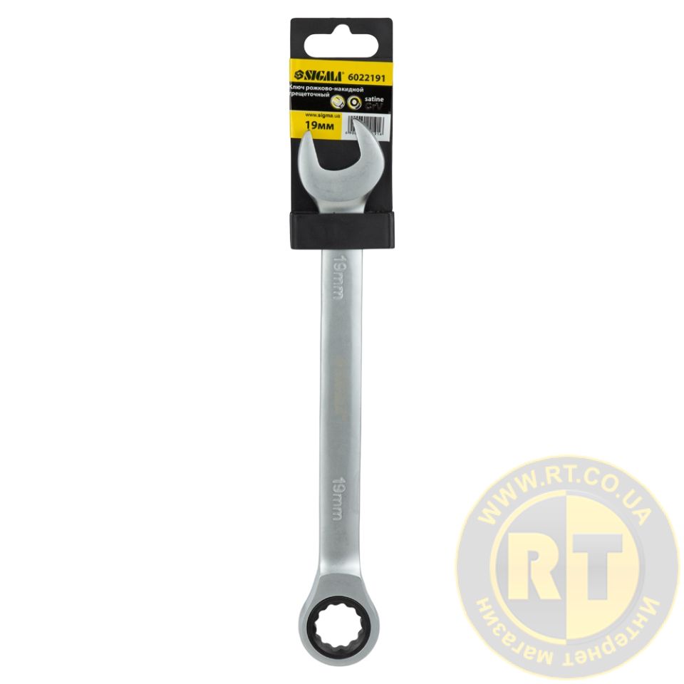 Ключ рожково-накидной трещоточный 19мм CrV SIGMA 6022191