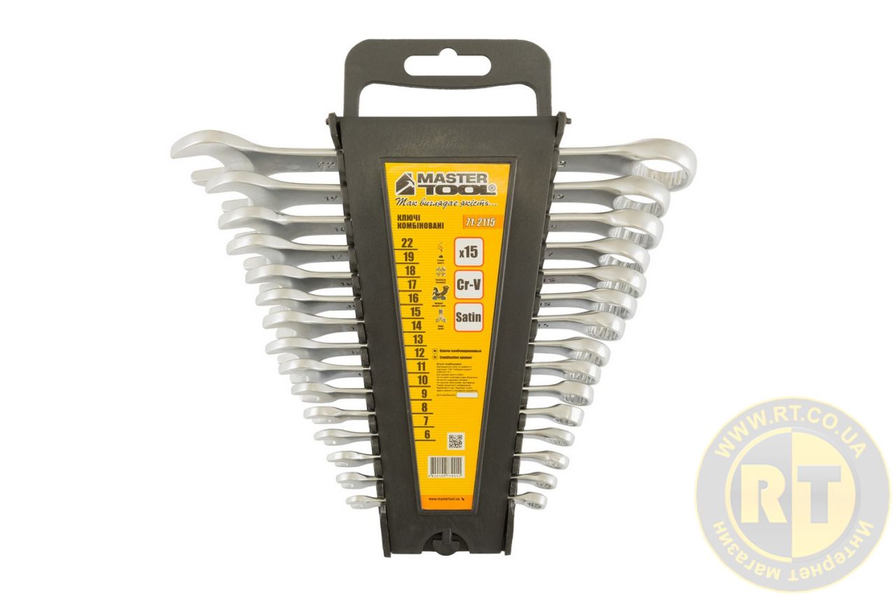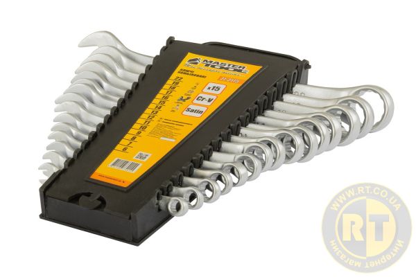 Ключі комбіновані набір 15 шт (6-19, 22 мм) CrV SATIN FINISH DIN3113 MASTERTOOL 71-2115