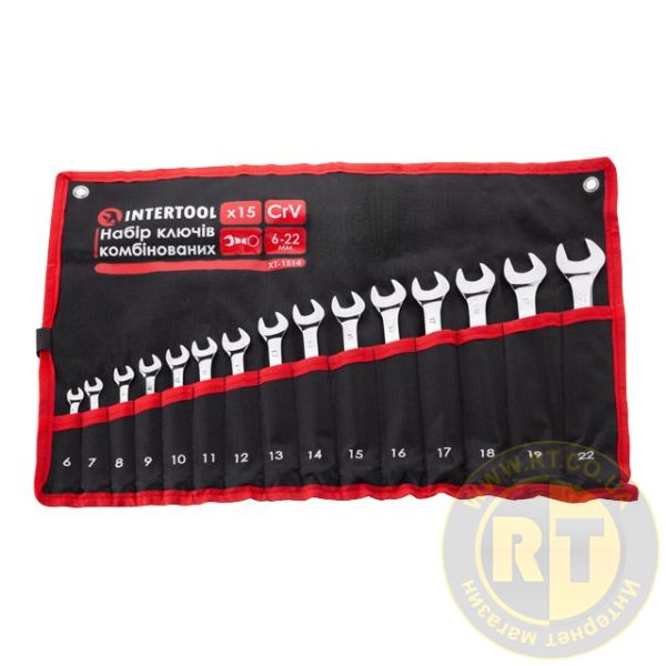 Набір ключів комбінованих, 15 шт., 6-22 мм, професійні, polishing, DIN3113, чохол INTERTOOL XT-1514