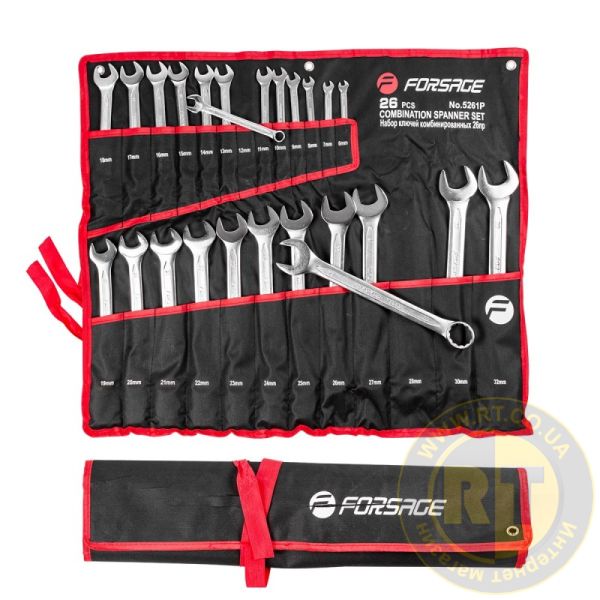 Набір ключів комбінованих 25 предметів (6-30, 32мм) на полотні Forsage FORCEKRAFT F-5261P