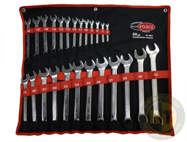 Набір ключів комбінованих 26 предметів (6-28, 30, 32мм), на полотні ROCKFORCE FORCEKRAFT RF-5261 (5261P)