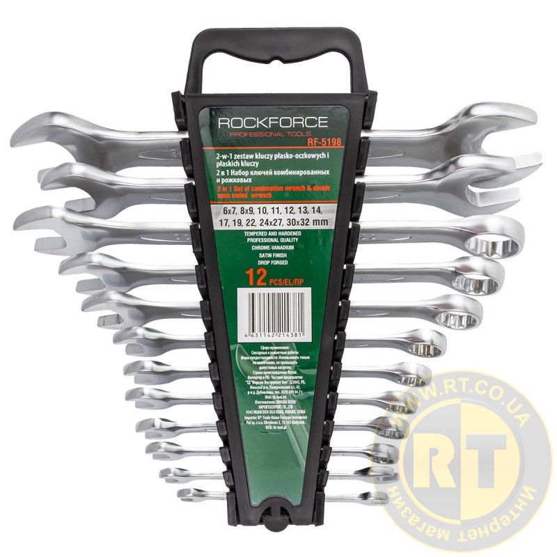 Набір ключів комбінованих і ріжкових, 12 предметів (6х7, 8х9, 10, 11, 12, 13, 14, 17, 19, 22, 24х27, 30х32мм), в пластиковому тримачі ROCKFORCE FORCEKRAFT RF-5198