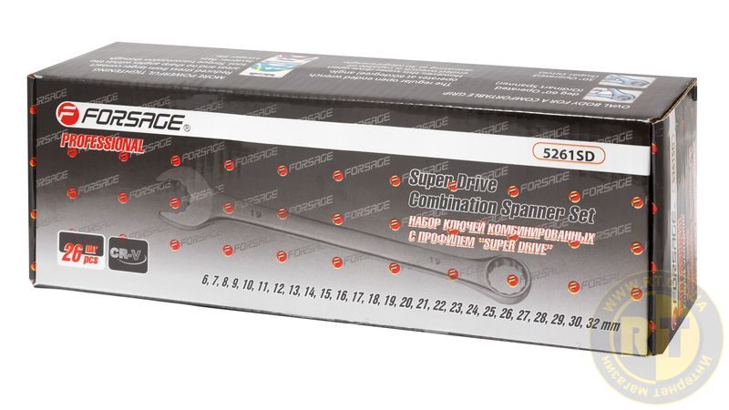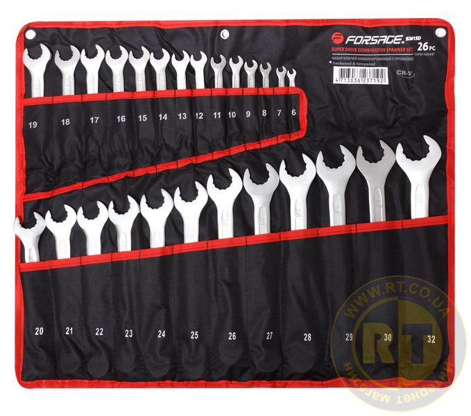 Набір ключів комбінованих з профілем "Super drive", 26 предметів (6-30, 32мм), на полотні Forsage FORCEKRAFT F-5261SD