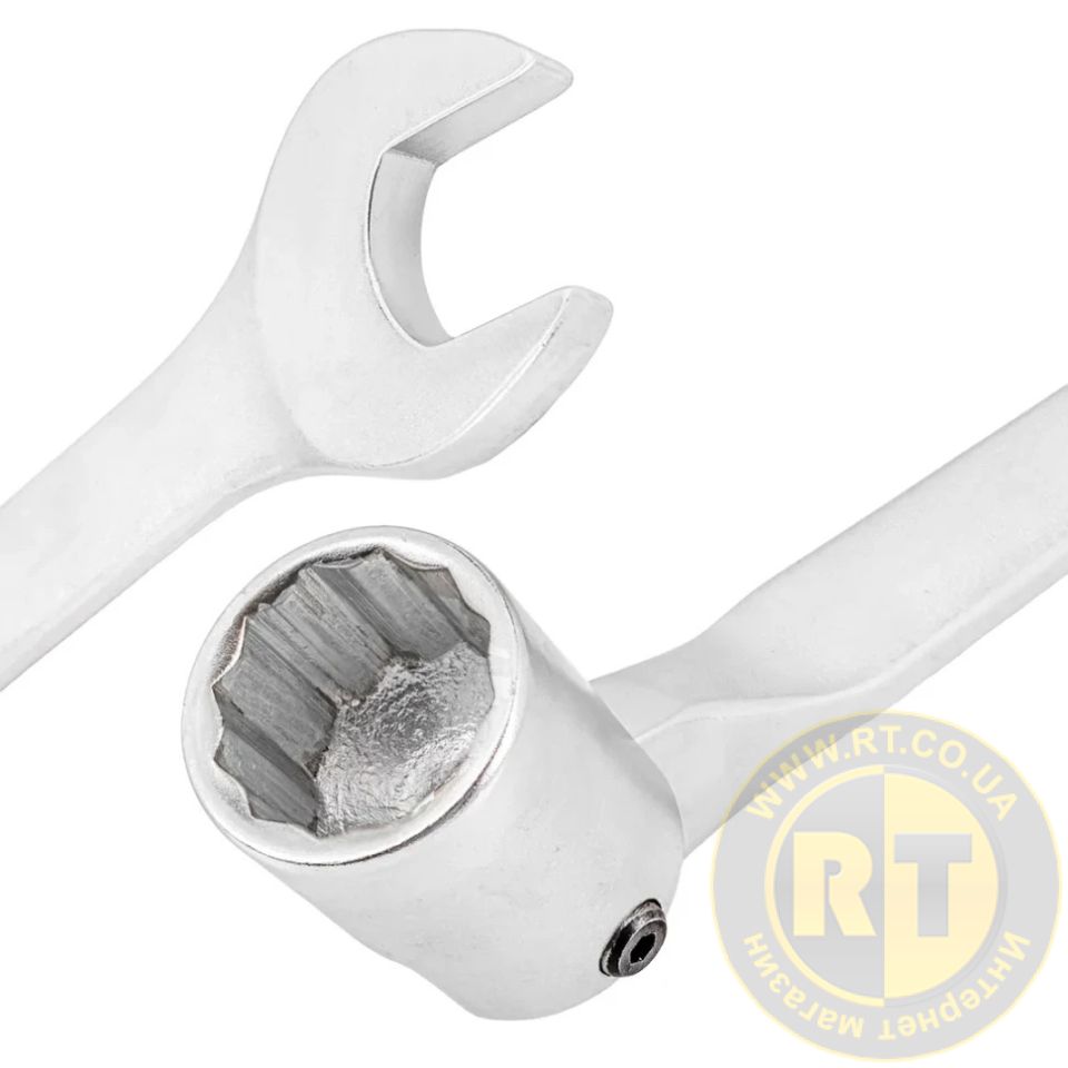 - Поєднує в собі функції ріжкового та торцевого ключів, що дозволяє працювати з різними типами кріплення.