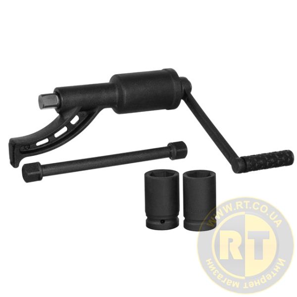 Перед початком роботи необхідно встановити ручку та обрати торцеву головку відповідного розміру. Для більш комфортної та ефективної роботи з ключем передбачена спеціальна ніжка, яка упирається в диск, забезпечуючи стабільне положення. Ручка має текстуроване покриття зі спіненого каучуку для кращої фіксації в руці.