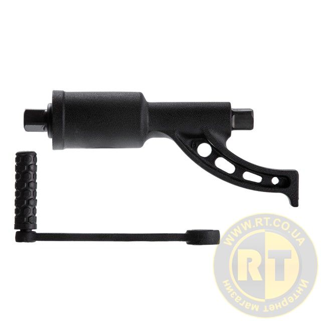 Перед початком роботи необхідно встановити ручку та обрати торцеву головку відповідного розміру. Для більш комфортної та ефективної роботи з ключем передбачена спеціальна ніжка, яка упирається в диск, забезпечуючи стабільне положення. Ручка має текстуроване покриття зі спіненого каучуку для кращої фіксації в руці.