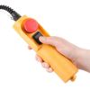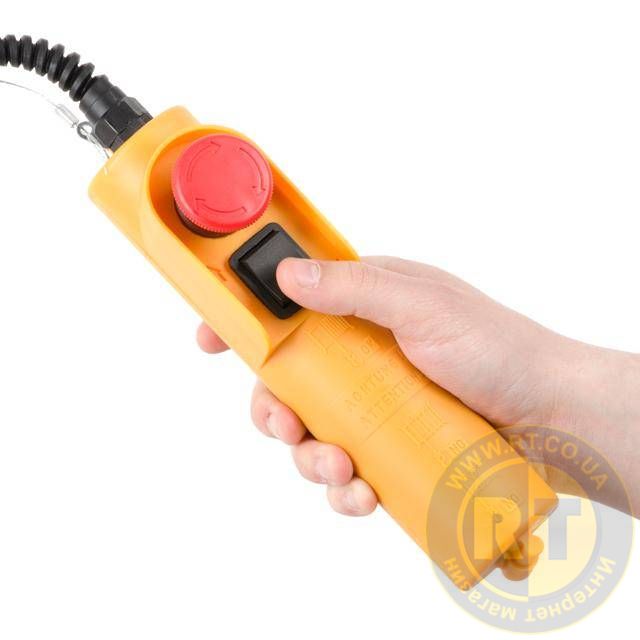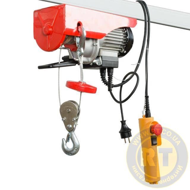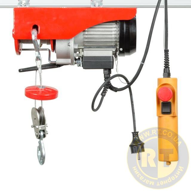 Лебідка працює від побутової мережі 220 В, має зручний пульт дистанційного керування з захистом проти випадкового пуску. Перед початком роботи тельфер необхідно закріпити на балці або рейці, яка зможе витримати не тільки вагу самого пристрою, але й вантажу, що підіймається.