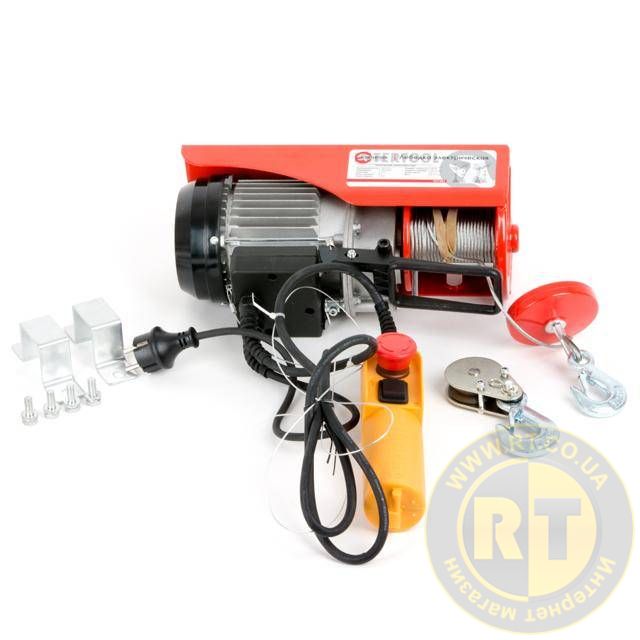- З блоком підіймає вантажі до 250 кг зі швидкістю намотування троса 4 м/хв на висоту до 6 м.
