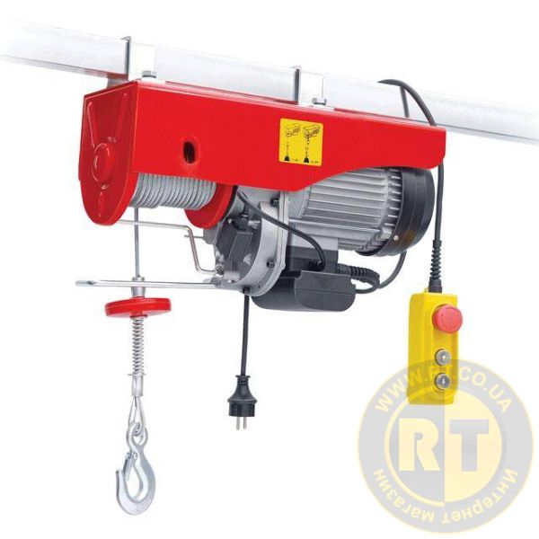 Лебідка працює від побутової мережі 220 В, має зручний пульт дистанційного керування із захистом проти випадкового пуску. Перед початком роботи тельфер необхідно закріпити на балці або рейці, яка зможе витримати не тільки вагу самого пристрою, але і вантажу, що підіймається.