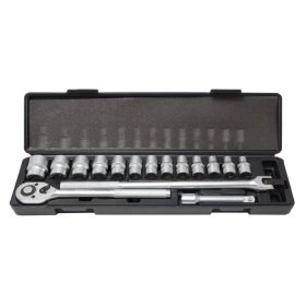 Набір головок з тріскачкою в пласт. 19 предметів 1/2" (8-32мм, 6-гран.)