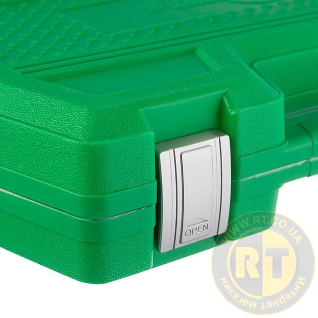 Кейс набору з шарнірними петлями та щільними замками. Інструменти закріплені у своїх посадкових місцях - нічого більше не розсипається в роботі або під час ходьби. Компактний, набір легко розміститься в багажнику або на стелажі.