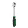 У наборі дві тріскачки з посадковими квадратами 1/2” та 1/4", з реверсом, кнопкою для скидання та фіксації головок. Храповик на 72 зуби забезпечує м'якість ходу і дозволяє працювати в умовах обмеженого простору. Ручка тріскачки двокомпонентна з гумовою накладкою в місці хвату для кращої фіксації в руці, не ковзає і не випадає під час роботи.