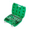 Основою комплекту є дві тріскачки з приводом 1/2" та 1/4", шестигранні головки для виконання різнопланових робіт на закручування та відкручування кріплень. На кожній головці нанесені насічки для запобігання ковзанню в руках.