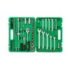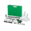 Кейс набору з шарнірними петлями та щільними металевими замками. Інструменти закріплені в посадкових місцях - нічого більше не розсипається під час роботи або ходьби. Компактний - набір легко розміщується в багажнику або на стелажі.