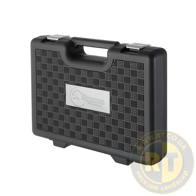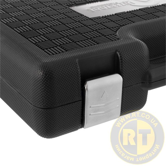 Кейс виготовлений з міцного пластику, із металевими замками. Всі інструменти щільно зафіксовані у своїх посадкових місцях, а наявність поролонового прошарку не дозволяє висипатися набору при транспортуванні.