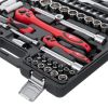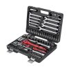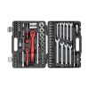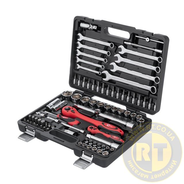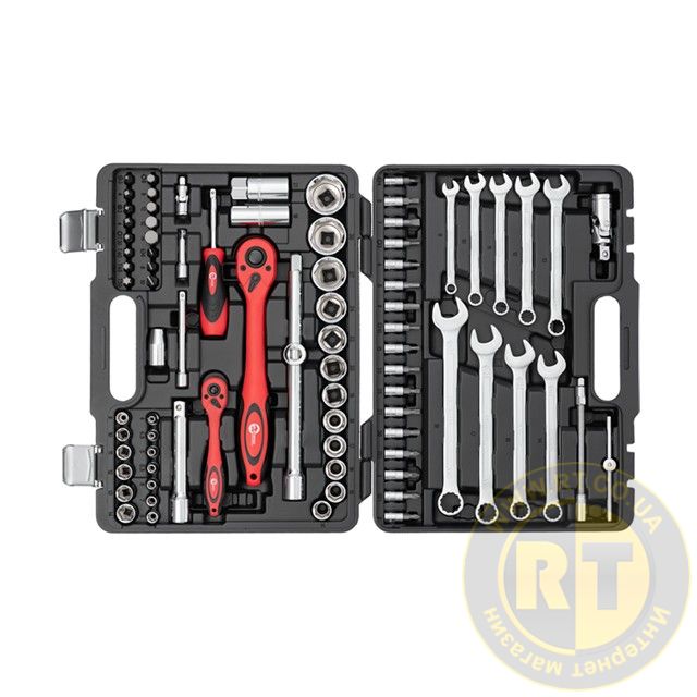 В основі комплекту дві тріскачки з приводом 1/2" та 1/4", шестигранні головки, 9 ріжково-накидних ключів зі збалансованим руків'ям - підходять для виконання різнопланових робіт на закручування та відкручування кріплень. Головки свічкові з гумовими вставками 16 та 21 мм потрібні для зручного монтажу свічок запалювання.