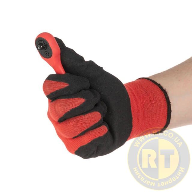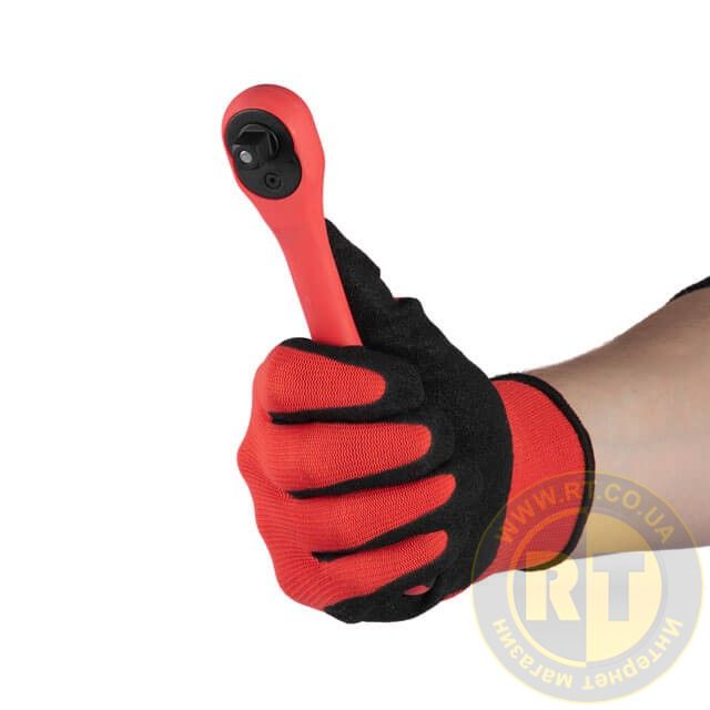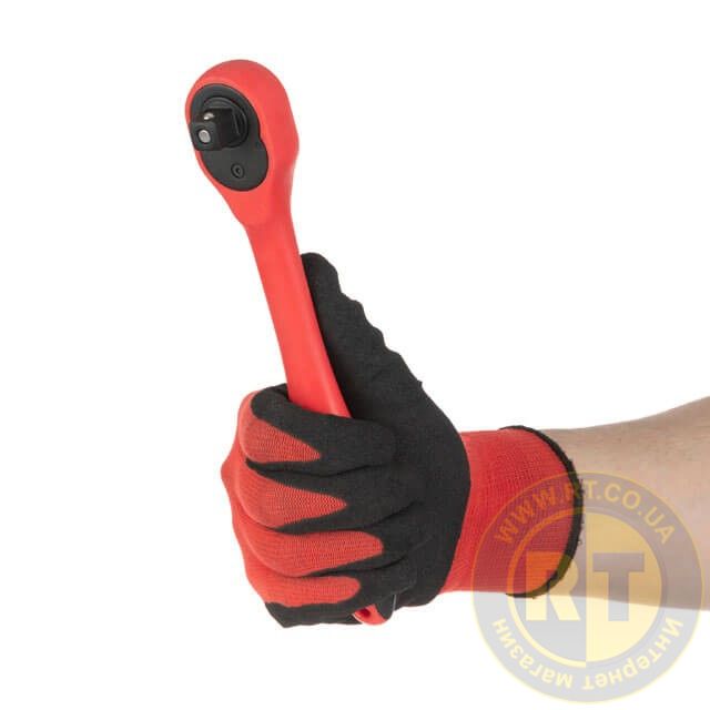 Невеликий вигин руків'я збільшує комфорт під час роботи з незручно розташованими кріпленнями. Тріскачки повністю вкриті захисним шаром поліпропілену з гумовими вставками на руків'ї для міцної фіксації інструмента в руці.