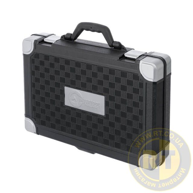 Кейс виготовляється з міцного пластику з металевими замками. Всі інструменти щільно зафіксовані на своїх посадкових місцях з маркуванням розміру головок. Наявність поролонового прошарку не дозволяє висипатися вмісту набору під час транспортування.