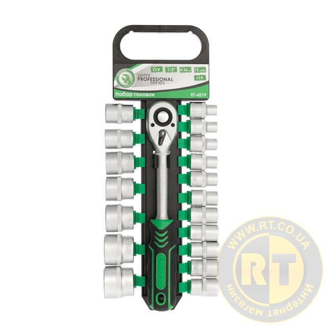 Набір голiвок 19 од. 1/2 "з рукояткою з храповим механізмом 72 зуба INTERTOOL ET-6019
