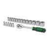 Набір головок з тріскачкою призначений для монтажу та демонтажу різних різьбових з'єднань. Привід 1/2” знадобиться для виконання переважної більшості робіт, пов'язаних з ремонтом обладнання, авто-, мото-, велотехніки, а також інших робіт у побуті та в гаражі кожного автолюбителя та домашнього майстра. До набору увійшли головки різних розмірів, які часто застосовуються, від 8 до 32 мм.