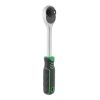 Тріскачка на 72 зуби з плавним ходом, швидким скиданням та фіксацією головок. Дозволяє дістати до кріплень у важкодоступних місцях. Руків’я тріскачки двокомпонентне, завдяки чому не ковзає у руках та гарантує максимум зручності в роботі.