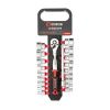 До набору увійшли найпопулярніші розміри торцевих головок, тріскачка та подовжувач для роботи у важкодоступних місцях.