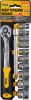 Компактний та універсальний набір торцевих 6-гранних головок розміром від 10 до 24 мм, виготовлений із хром-ванадієвої (CrV) сталі, що забезпечує високу міцність, довговічність та стійкість до корозії. Тріскачка з 72 зубцями дозволяє працювати з мінімальним кутом повороту, що особливо зручно у важкодоступних місцях. У комплекті є подовжувач, який полегшує роботу з кріпленнями, розташованими в глибоких посадкових місцях.