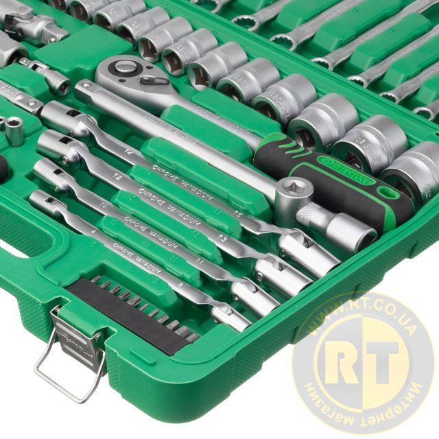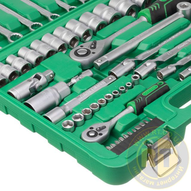 Набір включає 77 елементів для вирішення будь-якого завдання на відкручування, закручування кріплень. Для різних видів та діаметрів кріплень є цілий арсенал шестигранних торцевих головок від 4 до 32 мм.