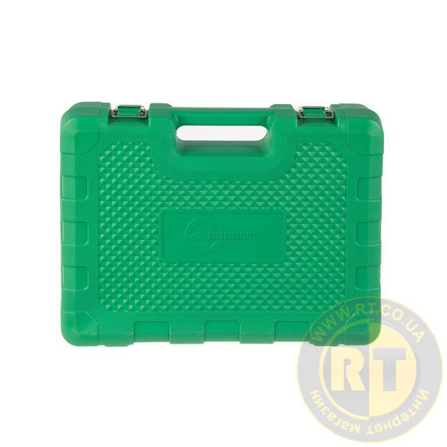 Кейс набору з шарнірними петлями та щільними замками. Інструменти закріплені у своїх посадкових місцях - нічого не розсипається під час роботи або ходьби. Компактний, набір легко розміститься в багажнику або на стелажі.