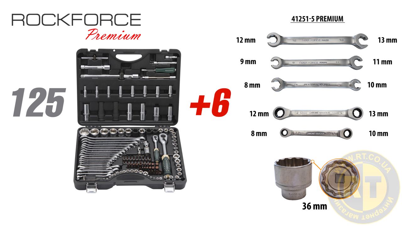 Набір інструментів 125+6пр.1/4"1/2"(6-гран.)(4-36мм,36-12гр.)+(ключи тріскачкові:8х10,12х13мм, ключі різьблені:8х10,9х11,12х13мм) FORSAGE RF-41